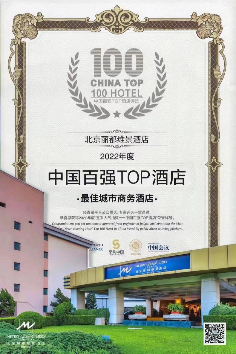 北京麗都維景酒店被評(píng)選為2022年度中國(guó)百?gòu)?qiáng)TOP酒店“最佳城市商務(wù)酒店”