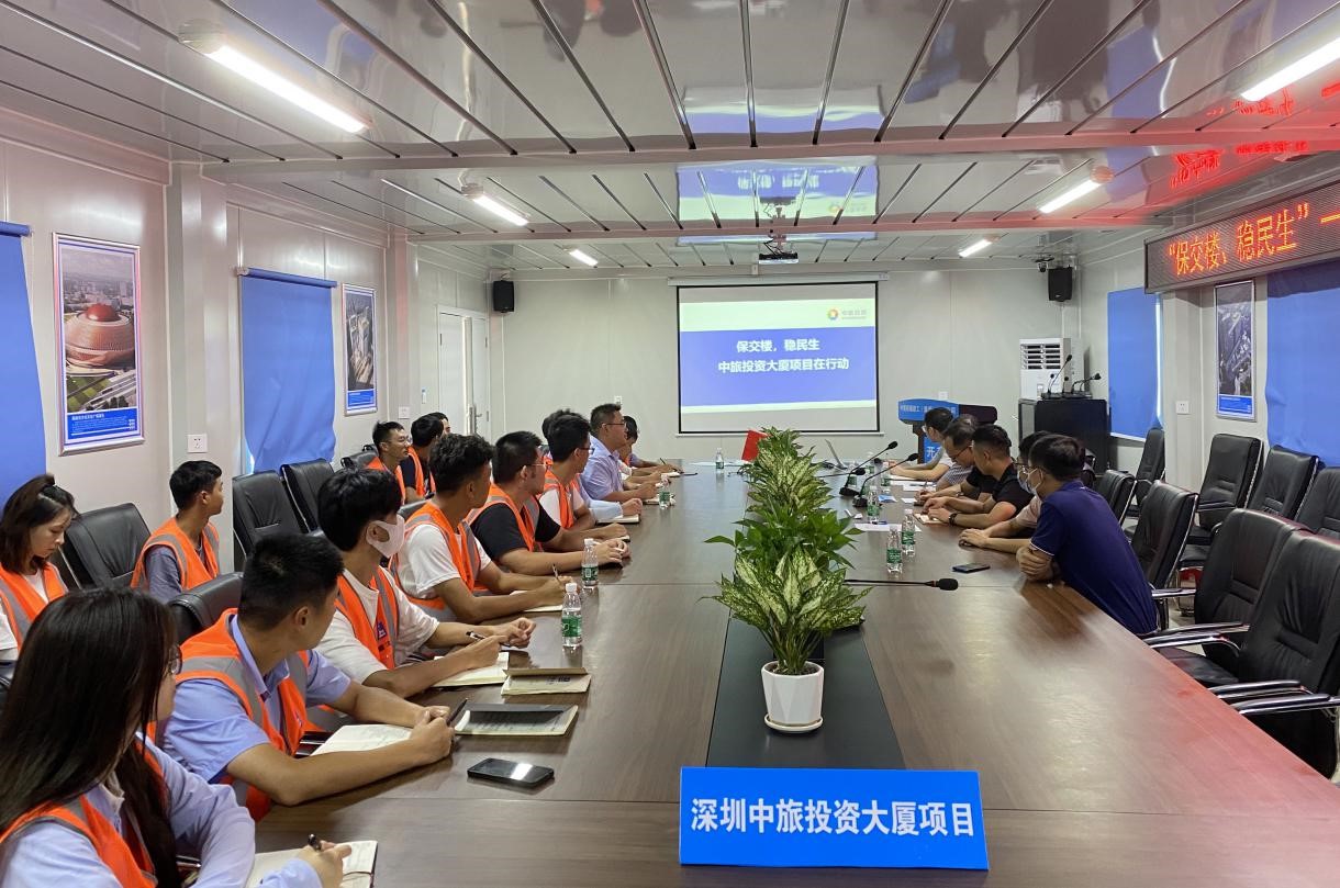中旅(深圳)城市發(fā)展有限公司黨支部組織召開“保交樓、穩(wěn)民生——中旅投資大廈項(xiàng)目在行動”會議,支部黨員、項(xiàng)目工作人員和總包人員參加會議。