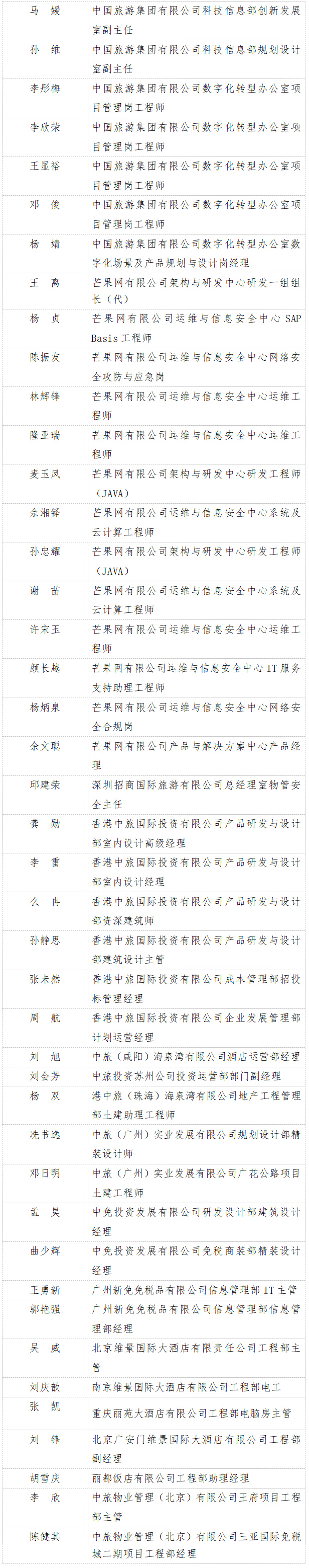 根據(jù)《中國(guó)旅游集團(tuán)有限公司會(huì)計(jì)、工程系列高級(jí)職稱評(píng)審暫行辦法》《中國(guó)旅游集團(tuán)有限公司工程系列初、中級(jí)職稱評(píng)審暫行辦法》規(guī)定,按照《關(guān)于開(kāi)展2022年度中國(guó)旅游集團(tuán)工程系列職稱評(píng)審工作的通知》(中國(guó)旅游集團(tuán)人通〔2022〕151號(hào))工作安排,現(xiàn)將2022年度集團(tuán)工程系列職稱評(píng)審結(jié)果予以公示。