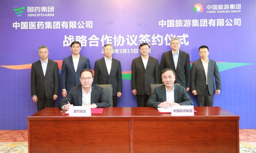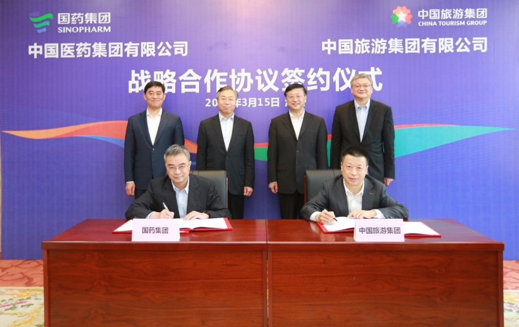 3月15日,集團(tuán)與國藥集團(tuán)在深圳簽署戰(zhàn)略合作協(xié)議,雙方旗下中國旅游集團(tuán)中免股份有限公司與中國國際醫(yī)藥衛(wèi)生有限公司簽署股權(quán)合作協(xié)議。集團(tuán)董事長陳寅,總經(jīng)理王海民;國藥集團(tuán)董事長劉敬楨,副總經(jīng)理胡建偉、董增賀、晉斌出席簽約儀式并見證簽約。集團(tuán)副總經(jīng)理、中國中免董事長李剛與國藥集團(tuán)副總經(jīng)理鄧金棟分別代表雙方簽署戰(zhàn)略合作協(xié)議,中國中免總經(jīng)理王軒與國藥國際總經(jīng)理周頌分別代表雙方簽署股權(quán)合作協(xié)議。