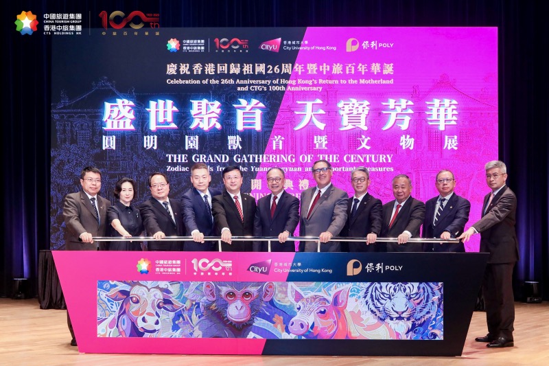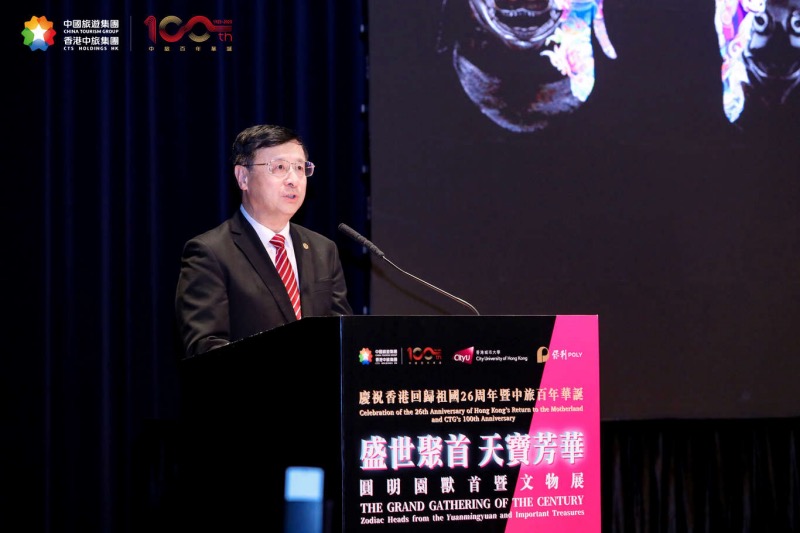 7月3日,“盛世聚首?天寶芳華---慶祝香港回歸祖國26周年暨中旅百年華誕圓明園國寶獸首文物展開幕典禮”在香港城市大學(xué)順利舉行。來自國家有關(guān)部委領(lǐng)導(dǎo)、香港特區(qū)政府有關(guān)官員、港澳地區(qū)各界精英、賢達(dá)名流、中國旅游集團(tuán)合作伙伴、旅游同業(yè)等約三百人出席盛事,見證了這一難忘時(shí)刻。