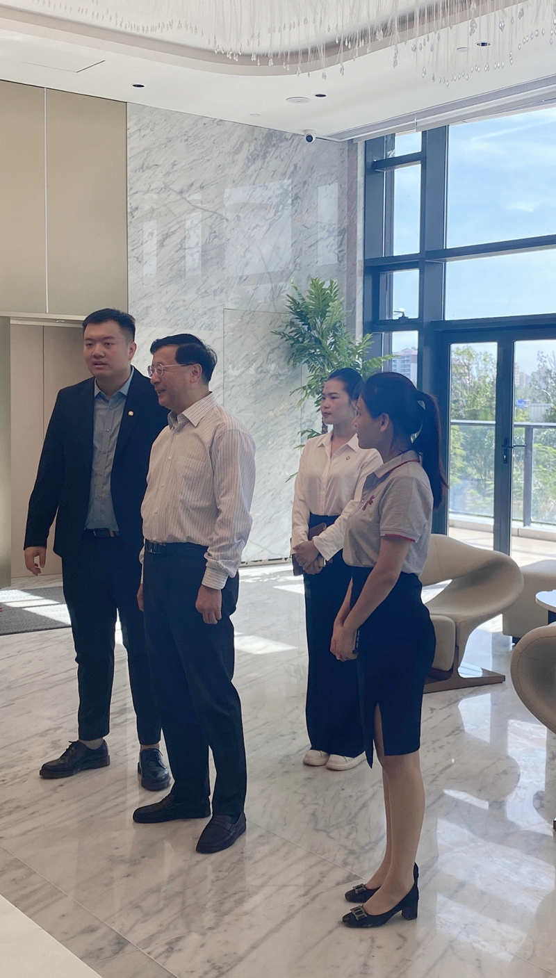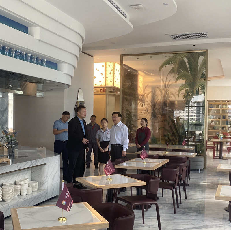 在中秋、國慶“雙節(jié)”將至的9月28日,??诿舛惓穷>熬频晗灿_業(yè)。9月29日中秋節(jié)當(dāng)天,集團(tuán)陳寅董事長赴??诿舛惓穷>熬频昕疾煺{(diào)研。
