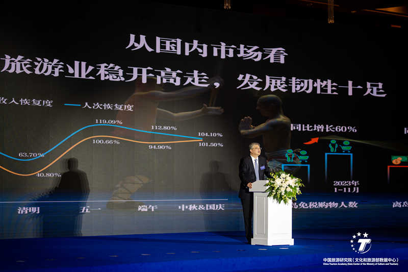12月11至12日,由中國旅游研究院和中國旅游協(xié)會(huì)聯(lián)合主辦的“2023中國旅游集團(tuán)化發(fā)展論壇”在上海召開。文化和旅游部黨組成員、副部長杜江,上海市政府副市長劉多,中國旅游協(xié)會(huì)會(huì)長段強(qiáng),中國旅游研究院院長戴斌以及文旅企業(yè)領(lǐng)導(dǎo)和嘉賓出席活動(dòng),集團(tuán)王海民總經(jīng)理參加主論壇并發(fā)表了題為《重構(gòu)價(jià)值 重塑優(yōu)勢(shì) 推動(dòng)旅游業(yè)高質(zhì)量發(fā)展》的主題演講。