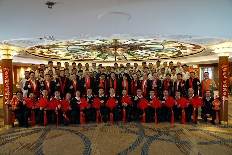 陳董在“鼓浪嶼”號(hào)7樓琴島演藝廳與全體船員見面,對(duì)大家表示親切慰問,并對(duì)寶山區(qū)及駐區(qū)口岸單位前期給予的大力支持表示感謝。陳董表示,“鼓浪嶼”號(hào)的船員是中國郵輪業(yè)發(fā)展的種子,未來必定能施展才能,綻放光彩。