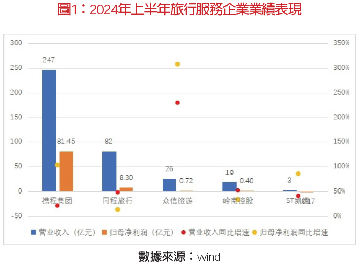 市場向在線旅游企業(yè)集中,OTA企業(yè)規(guī)模效應(yīng)進(jìn)一步加大。今年上半年,攜程、同程兩大OTA企業(yè)營收占本報告跟蹤的29家旅企營收的27.15%,其中, 攜程集團(tuán)實現(xiàn)營業(yè)收入247億元,同比增長21%,較2019年增長46%;歸母凈利潤81億元,同比增長103%,較2019年增長93%。同程旅行實現(xiàn)營業(yè)收入82億元,同比增長48%,較2019年增長140%;歸母凈利潤為8.3億元,同比增長13%,較2019年增長180%。國際化業(yè)務(wù)是支撐OTA企業(yè)業(yè)績增長的重要因素之一。二季度經(jīng)營數(shù)據(jù)顯示,攜程集團(tuán)國際OTA 平臺的總收入同比增長約70%;出境酒店和機(jī)票預(yù)訂已全面恢復(fù)至2019年疫情前同期的100%水平,顯著超越行業(yè)平均70%以上的國際航班恢復(fù)率。同程旅行國際機(jī)票預(yù)訂量創(chuàng)下歷史新高,同比增長160%, 國際酒店間夜數(shù)同比增長140%。平臺用戶量穩(wěn)步提升,市場下沉。同程旅行截至2024年6月30日止,12 個月實現(xiàn)年付費用戶數(shù)2.28億,同比增長4.8%,其中居住在中國非一線城市注冊用戶數(shù)占87%以上。
