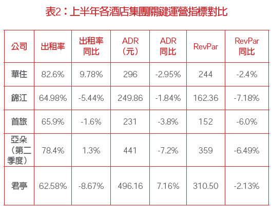 受上半年宏觀消費以及去年高基數(shù)影響,上半年各大酒店集團(tuán)出租率表現(xiàn)分化,RevPAR、ADR則普遍出現(xiàn)下滑。上半年,受宏觀經(jīng)濟(jì)不確定以及消費者信心不足等因素影響,商旅需求方面,差旅預(yù)算收緊,商務(wù)差旅活動更多集中在中心城市。旅游需求方面,消費信心下滑,酒店行業(yè)面臨消費分級的壓力,此外,二季度開始極端天氣明顯,出行減少。從出租率來看,華住和亞朵酒店保持了正增長,分別同比增長9.78個百分點和1.3個百分點;錦江同比下降5.44個百分點,首旅則微降1.6個百分點,君亭酒店下降8.67個百分點。從平均房價和間房收益來看,亞朵和君亭酒店作為中高端酒店的代表,其平均房價和間房收益明顯高于華住、錦江和首旅酒店,但從同比來看,受整體宏觀環(huán)境及惡劣天氣影響,亞朵和君亭酒店的同比降幅也較大,其中君亭酒店旗下新安江景瀾酒店遭受的持續(xù)大雨和洪澇災(zāi)害致使酒店停業(yè)抗災(zāi)長達(dá)半月之久。華住集團(tuán)預(yù)計今年7、8兩月暑期數(shù)據(jù)將同比下降10%左右。