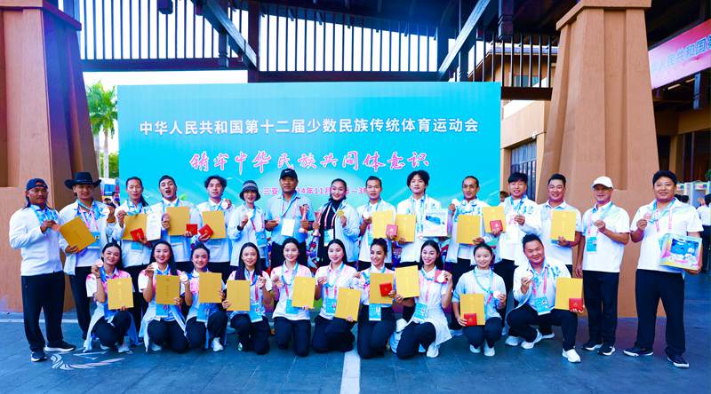 11月30日,第十二屆全國少數(shù)民族傳統(tǒng)體育運動會在海南省三亞市落下帷幕。作為廣東代表團成員之一,中旅國際所屬錦繡中華代表隊在多個項目中斬獲佳績。其中,彝族《賽煙盒斗蹲斗》、哈尼族《米索扎》等民族特色表演分別斬獲綜合類項目三等獎;維吾爾族伊巴代提·麥麥提敏、彝族李順德、水族韋霜、藏族索南多杰本、佤族巖幫等代表隊成員分別榮獲體育道德風尚獎。