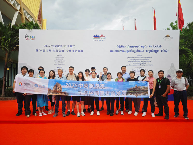5月23日,2025“中柬旅游年”開幕式暨“水韻江蘇-多彩高棉”專場文藝演出在柬埔寨金邊舉行。柬埔寨副首相兼內(nèi)閣辦公廳大臣翁賽維索作為首相洪瑪奈特別代表,同柬埔寨旅游部大臣胡海,中國駐柬埔寨大使汪文斌,江蘇省代表團(tuán)和中柬各界代表出席。中旅旅行策劃的“2025中柬旅游年千人游”民間使者系列團(tuán)活動同步啟動。