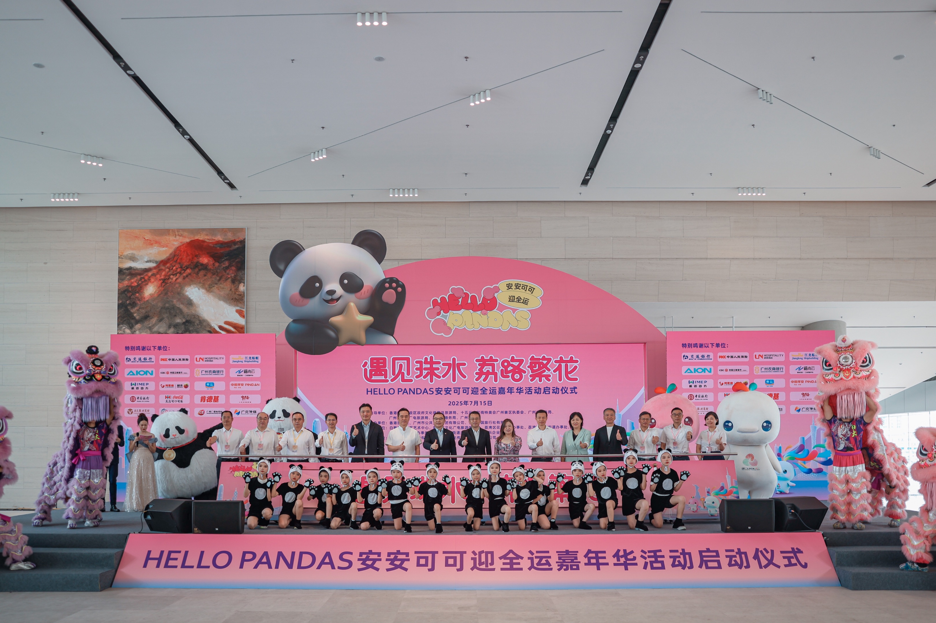 7月15日,由中旅旅行所屬香港中旅社攜手香港民建聯(lián)、廣州公交集團(tuán)打造的“HELLO PANDAS 安安可可迎全運(yùn)·遇見珠水·荔路繁花”嘉年華,在廣州白鵝潭大灣區(qū)藝術(shù)中心盛大啟幕。香港特區(qū)行政長(zhǎng)官李家超視頻致辭,高度肯定項(xiàng)目對(duì)深化粵港協(xié)作、激活灣區(qū)文旅經(jīng)濟(jì)的重要價(jià)值。廣州市副市長(zhǎng)江智濤、香港特區(qū)政府文化體育及旅游局局長(zhǎng)羅淑佩、集團(tuán)副總經(jīng)理簡(jiǎn)易、香港立法會(huì)議員姚柏良等穗港政商界 150余位代表出席活動(dòng)。