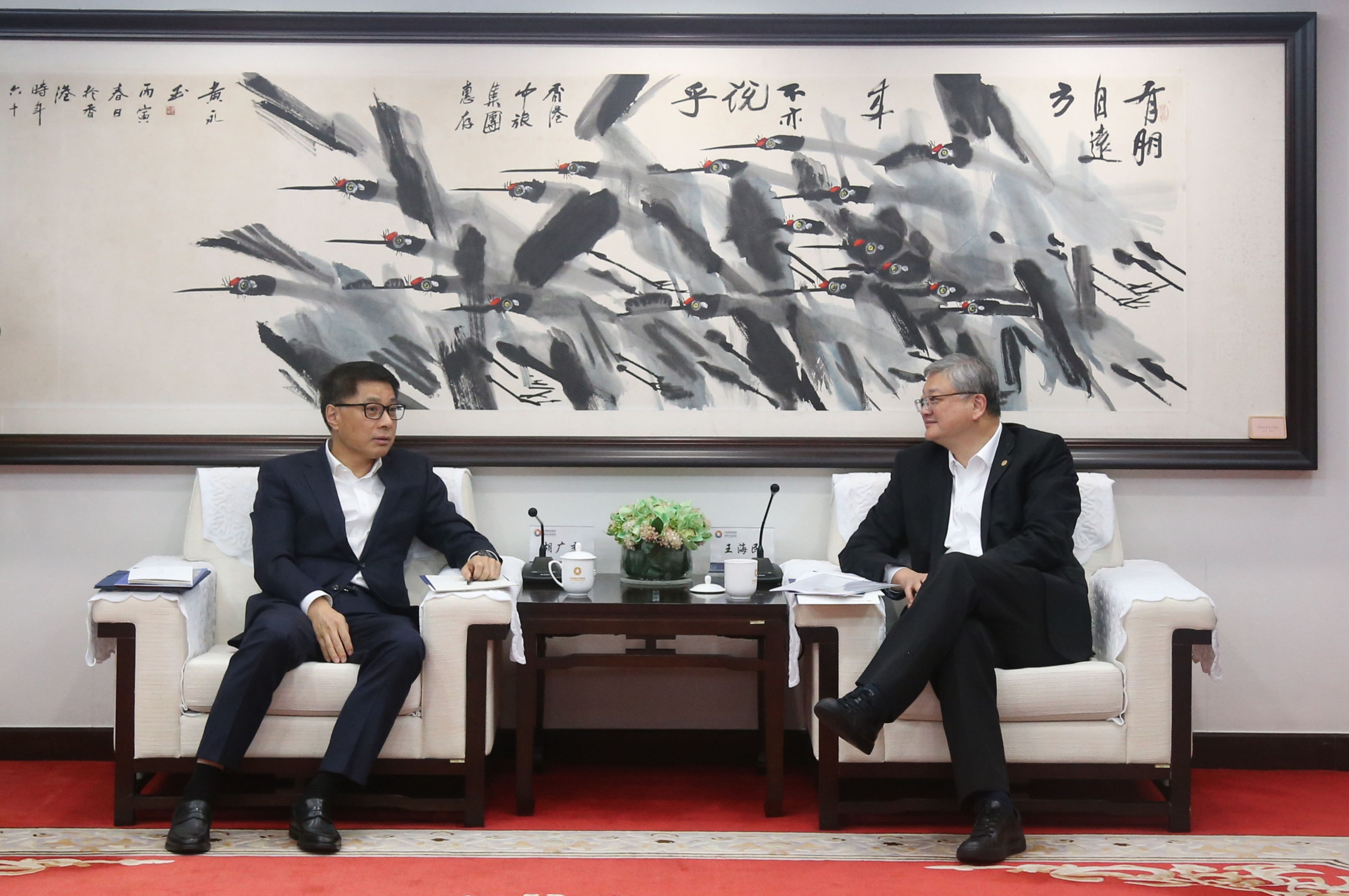 1月14日,集團董事長王海民在香港會見上海市普陀區(qū)委書記胡廣杰一行。