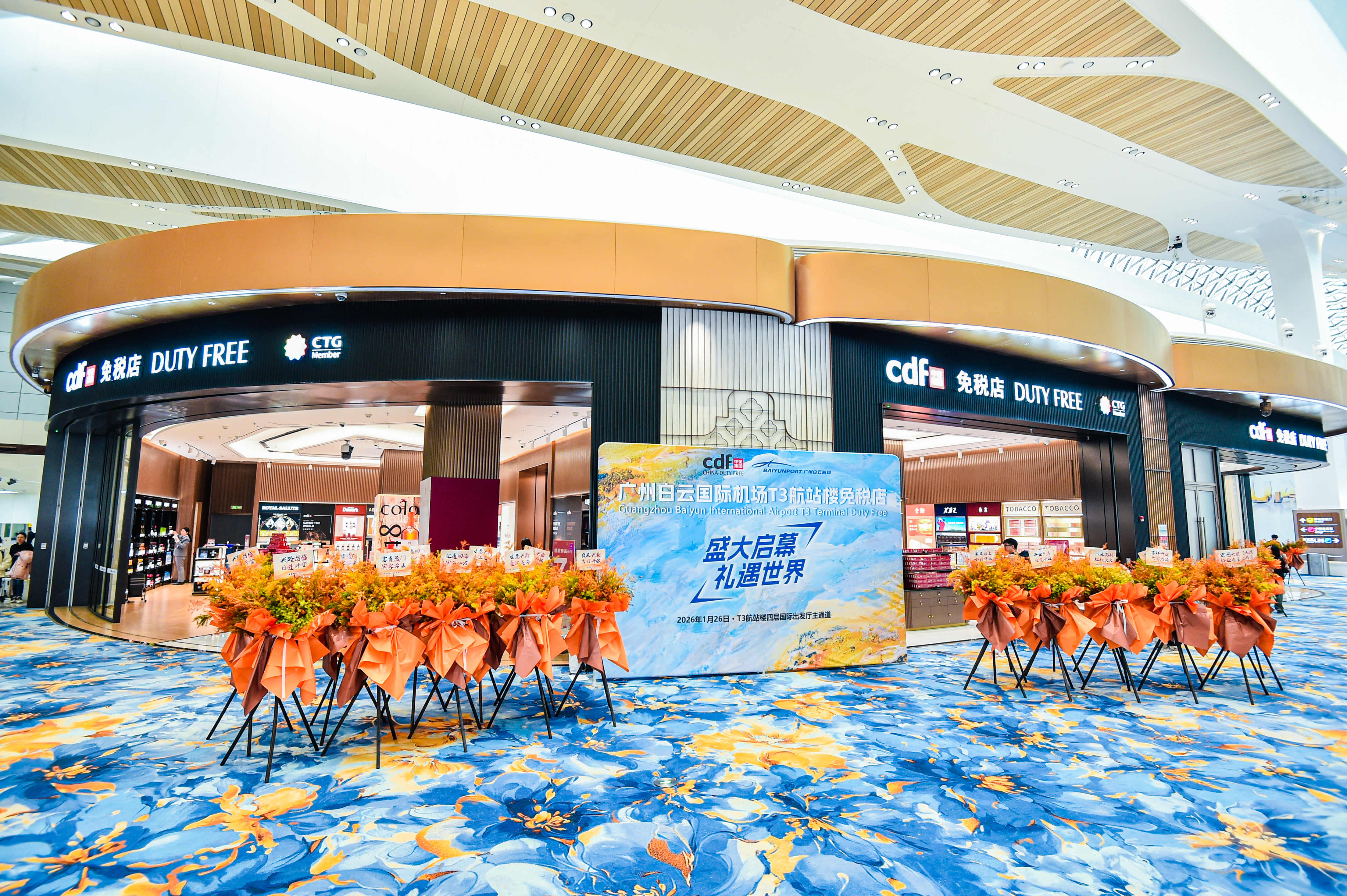 1月26日,中旅免稅與白云機(jī)場攜手打造的廣州白云國際機(jī)場T3航站樓出境免稅店正式開業(yè)。