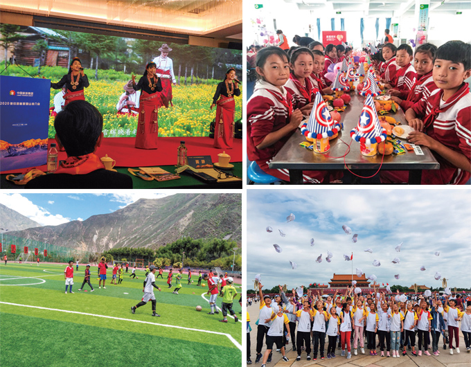 圖1-4:2020德欽縣梅里雪山推介會;「星旅家庭成長計(jì)劃」公益項(xiàng)目,為孩子們打造學(xué)習(xí)生活空間;集團(tuán)幫扶的德欽三小操場;中國旅游集團(tuán)希望之星成長營