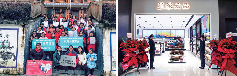中旅免稅下屬三亞國際免稅城「星旅云品」扶貧店充分利用「離島免稅 年終盛典」及國慶黃金周的客流優(yōu)勢,開展促銷活動,拉動扶貧產(chǎn)品銷售。黃金周期間,星旅云品扶貧店累計銷售來自集團(tuán)3省5縣的扶貧產(chǎn)品8萬余元,銷售額較平時增長近一倍。