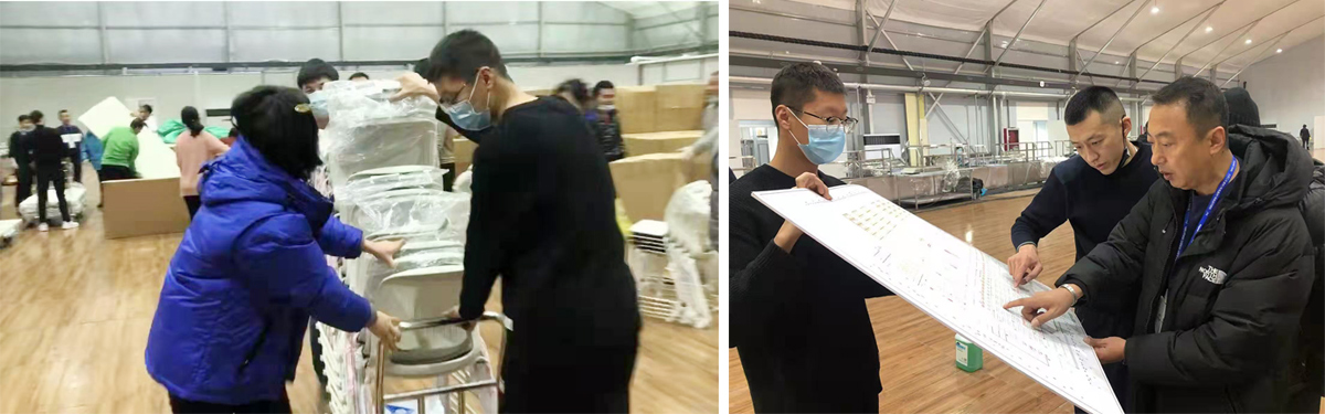 旭東來到冬奧村,正式加入餐飲組時,他形容道:“剛開始什么都沒有。”那時的運(yùn)動員餐廳只有兩個棚子,大家很著急。在大家共同的努力下,餐廳的狀況得到了改觀,為了盡可能節(jié)約開支,無論領(lǐng)導(dǎo)還是大廚,餐飲組全員當(dāng)起了“搬運(yùn)工”,廚房用具到貨卸貨、一張張桌椅板凳,旭東說,“都是我們一點點搬運(yùn)的,也是我們一項項落位拼好的?!?/p>
