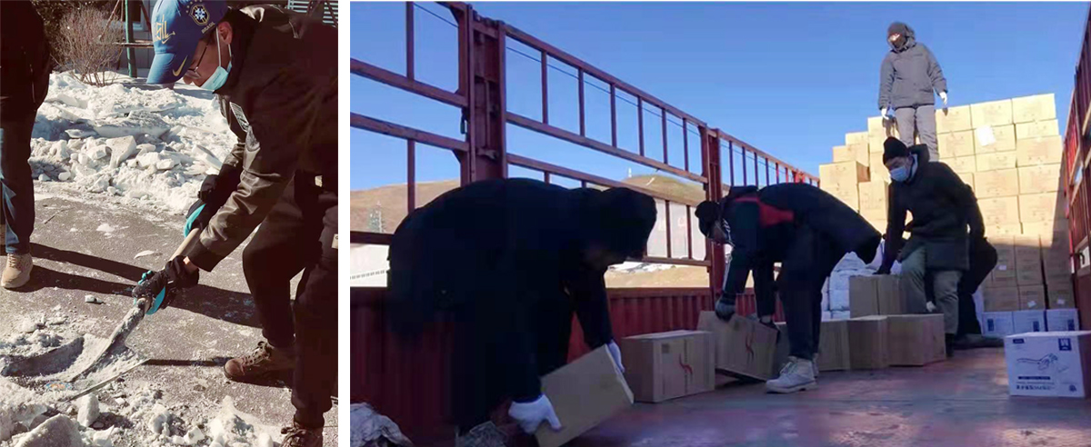 崇禮的冬天,比北京和山西老家都來的早、來的突然。一夜之間天寒地凍,一夜之間雪沒膝蓋。大雪后,大家一起清掃餐廳門口的積雪,開辟出道路,幾位年輕人邊掃雪邊哼唱著曲子,旭東感覺一下子回到了學(xué)校。有一天,在大貨車上卸貨時,旭東的臉愣是被寒風(fēng)吹破?!耙驗槭悄欠N十幾個輪子的貨車,必須要站上去卸貨,我和幾個同事在車上卸了一天的貨,然后我的臉就被吹傷了,溫度一高就疼?!彼貞浀溃骸按蠹叶己荜P(guān)心我,董湛哥給我找了嬰兒油,還給了我面膜讓我保護(hù)好自己?!倍炜梢愿?,但有愛就不怕,心也會更暖。