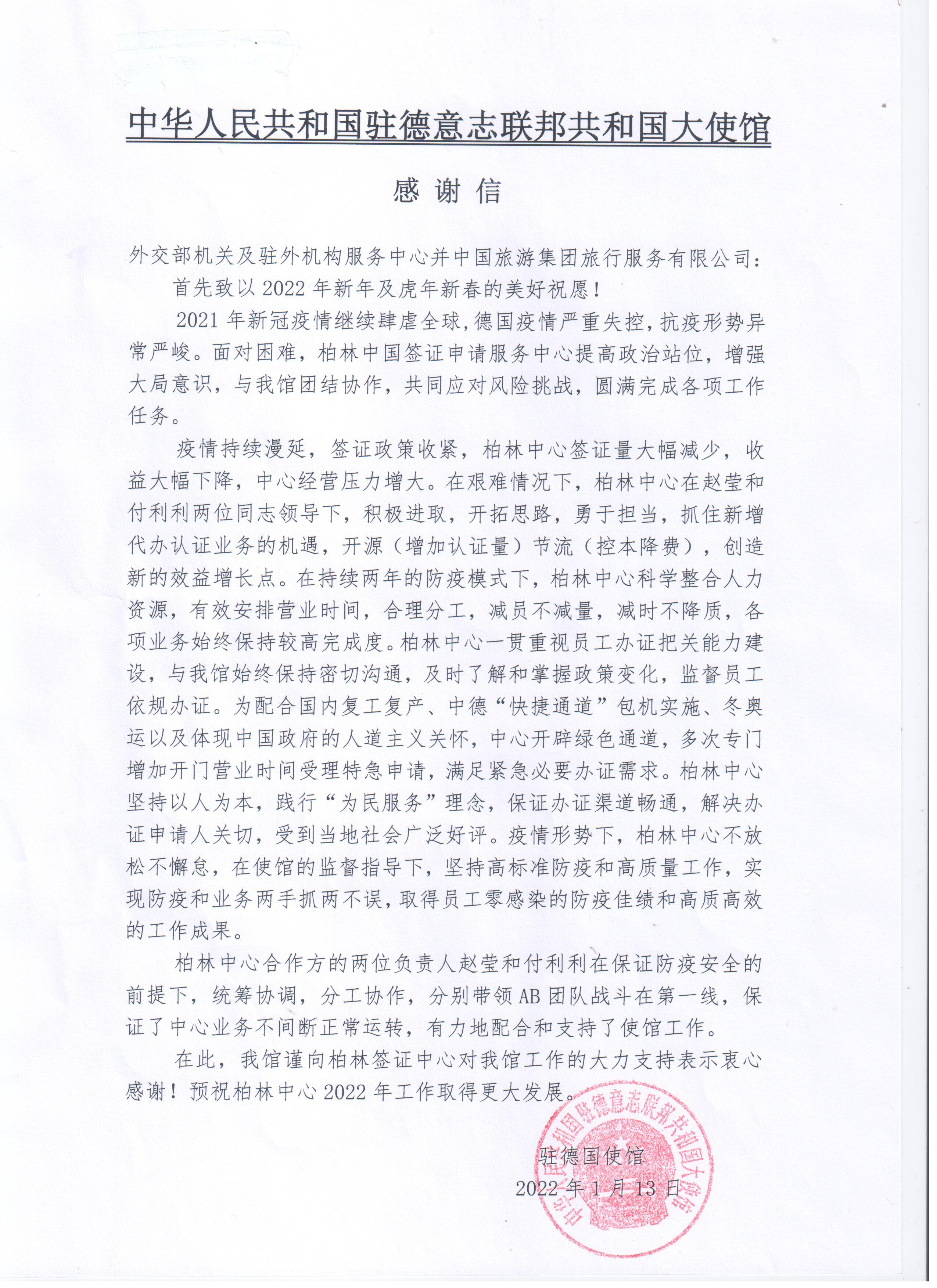 其中,柏林中國簽證申請服務(wù)中心收到駐德使館感謝信,大使館對中心為冬奧賽事人員提供優(yōu)質(zhì)服務(wù)提出表揚(yáng);捷克滑雪協(xié)會及相關(guān)人員向布拉格中國簽證申請服務(wù)中心致送多封感謝信;斯德哥爾摩中國簽證申請服務(wù)中心為冬奧會VIP國際醫(yī)藥官員辦理特急簽證,有關(guān)官員特別感謝中心給予的幫助,并向員工發(fā)送感謝郵件。