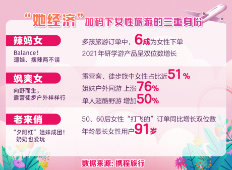 (一)“她經(jīng)濟(jì)”加碼下女性旅游的三重身份:辣媽族、颯爽女、老來(lái)俏
