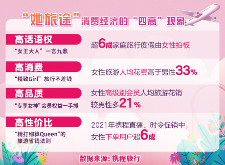4、高性價(jià)比:攜程直播女用戶下單占比62%;熱衷“囤旅游”女用戶增長(zhǎng)20%