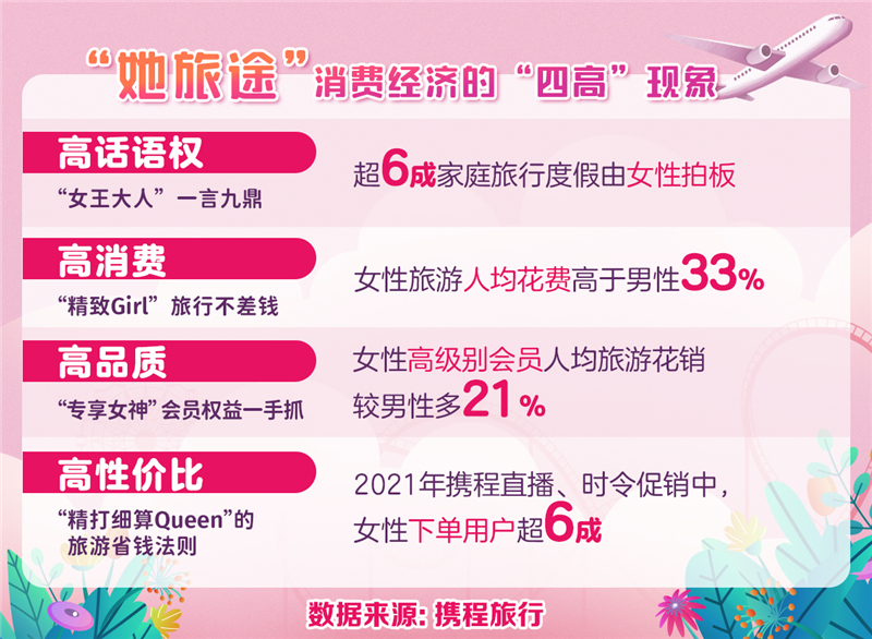 “越來越多的女性在旅途中找到自己、發(fā)掘自己。不論是二胎三胎的辣媽,還是永遠‘在路上’的獨立女性,女性在旅游市場中的地位越來越凸顯。作為一站式旅游服務公司,攜程將在未來開展更多關于女性出行的分析研究,推出更多女性友好的旅行產(chǎn)品和服務,為女性旅游提供更貼心的服務保障?!睌y程集團CEO孫潔表示。