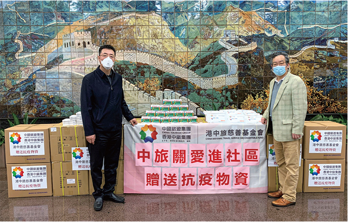 香港第五波疫情形勢持續(xù)嚴峻,單日確診數(shù)字高企不下,全面防控疫情擴散、全力保障市民健康安全到了最緊要的關頭。為堅決貫徹落實習近平總書記關于支援香港抗擊第五波新冠肺炎疫情工作的重要指示精神,切實履行駐港央企的社會責任,集團及所屬在港企業(yè)持續(xù)開展「中旅關愛進小區(qū)」活動。3月6日,集團再度捐贈600 余萬港幣的抗疫物資,繼續(xù)支持香港社會防疫抗疫工作。集團副總經(jīng)理石善博專程來到觀塘雙順小區(qū),慰問集團員工、觀塘區(qū)議員符碧珍,并向小區(qū)捐贈了防護口罩、連花清瘟膠囊、快速檢測盒等抗疫物資。