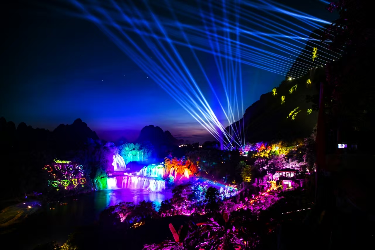 景區(qū)傾力打造亞洲首個(gè)沉浸式跨國夜游互動(dòng)體驗(yàn)項(xiàng)目--“奇妙?夜德天”,游客可從高空棧道俯瞰德天瀑布夜景,欣賞璀璨燈光下瀑布的磅礴氣勢,也能近距離感受燈光與水幕的完美交融,獲得身臨其境的體驗(yàn),實(shí)現(xiàn)“一夜德天,一瀑兩國”的沉浸式體驗(yàn)。